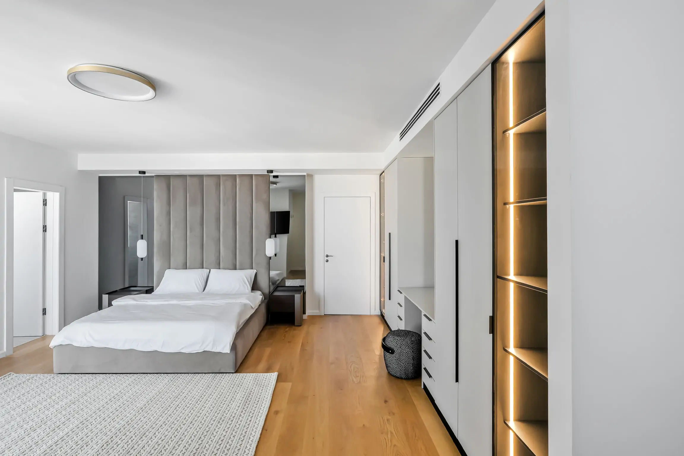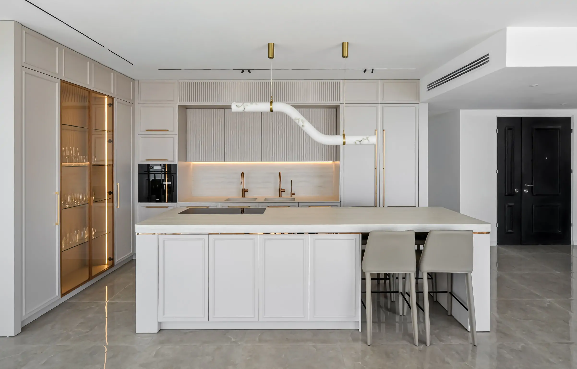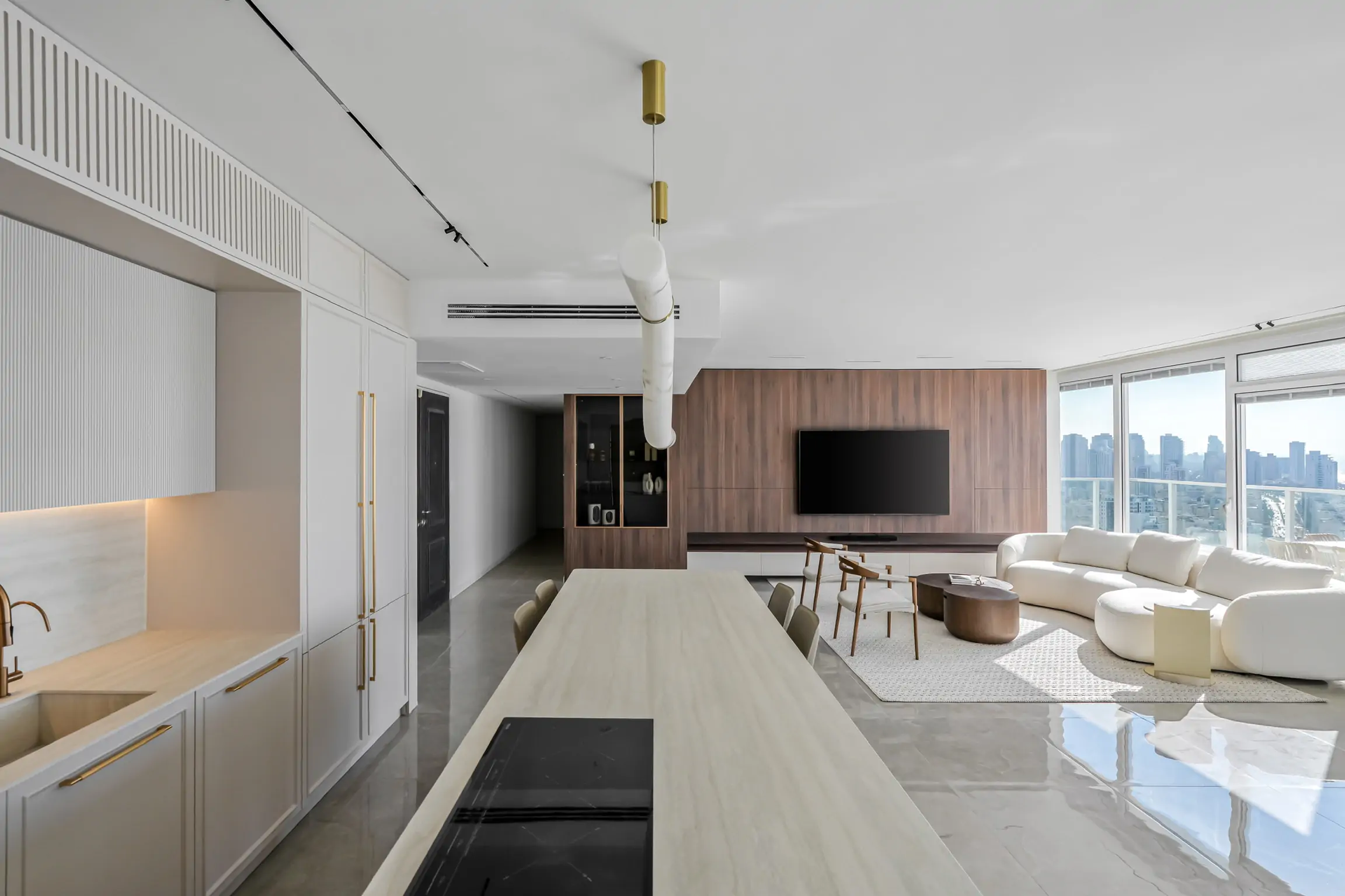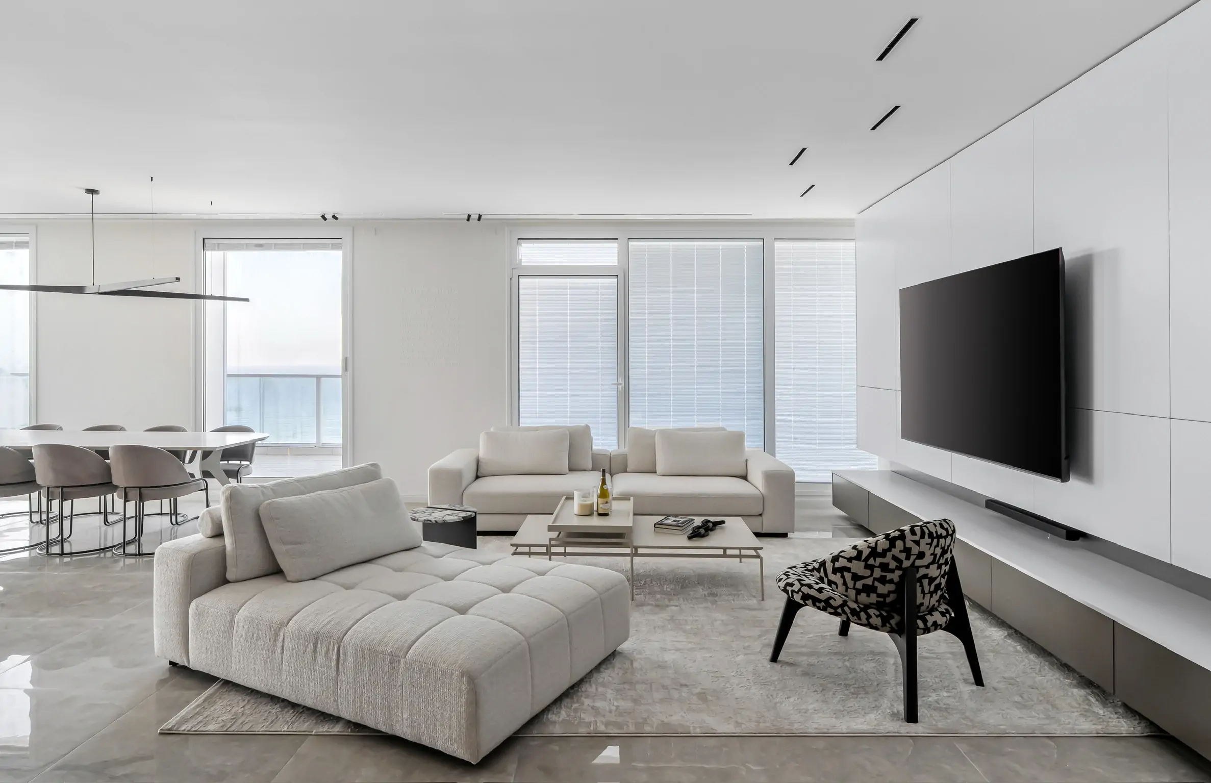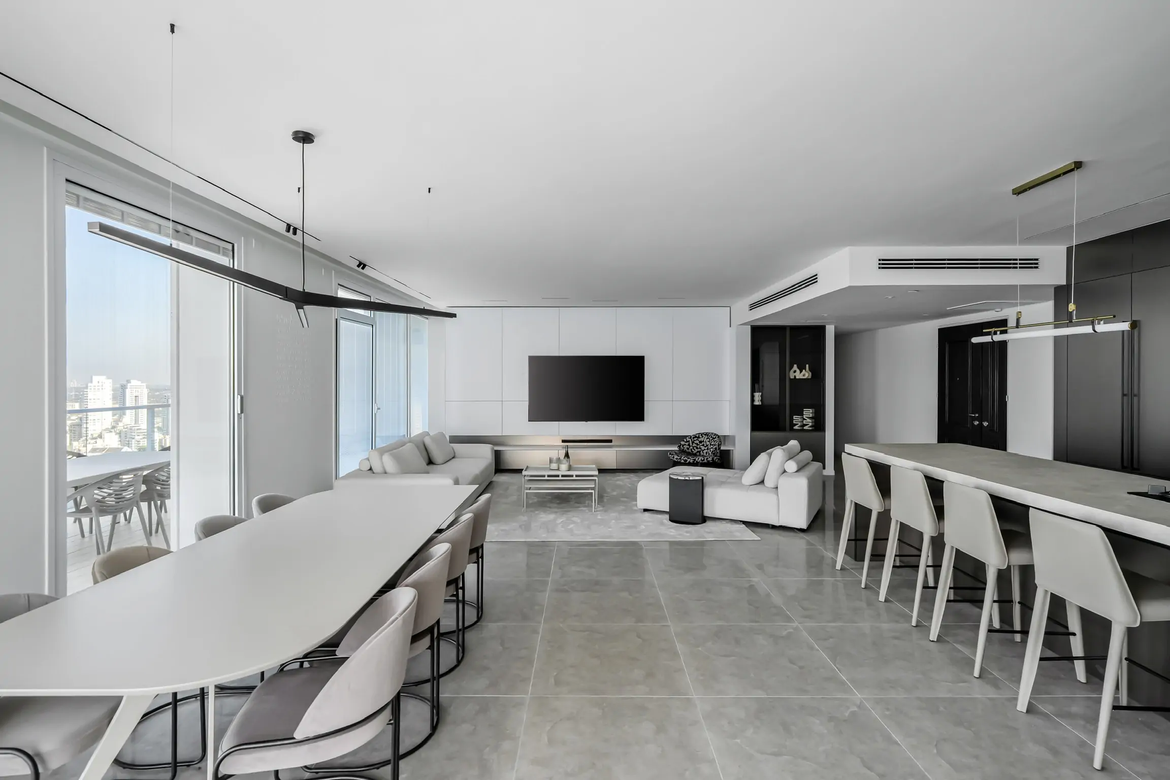 פרויקט של שני פנטהאוזים יוקרתיים בקומה ה־31, במגדל של מלון דוד בנתניה, המהווה ביטוי לרמת ביצוע גבוהה במיוחד ושילוב מדויק בין תכנון אדריכלי מוקפד לבין עבודות גמר ללא פשרות. הפרויקט בוצע תוך התמודדות עם אתגרי בנייה מורכבים בגובה, ניהול קפדני של כלל המערכות ותיאום מלא בין כל בעלי המקצוע, במטרה לייצר חלל מגורים נקי, מדויק ויוקרתי ברמה הגבוהה ביותר. הקו הביצועי התבסס על מינימליזם מוקפד, חיבורים נסתרים, קווים ישרים וגימור מושלם, לצד שימוש בחומרים איכותיים ונגרות בהתאמה אישית. החללים הציבוריים תוכננו ובוצעו כמרחב פתוח ורחב עם פתחים גדולים במיוחד המכניסים את הים פנימה, המטבח והנגרות משלבים פתרונות מתקדמים ותאורה אינטגרלית, וחדרי הרחצה מבוצעים בקו נקי בסגנון ספא עם פתרונות התקנה מדויקים. הפרויקט כולו מנוהל ומבוצע ברמת שליטה מלאה בפרטים, מתוך הבנה שיוקרה אמיתית נמדדת לא רק בנראות אלא באיכות הביצוע בכל נקודה.